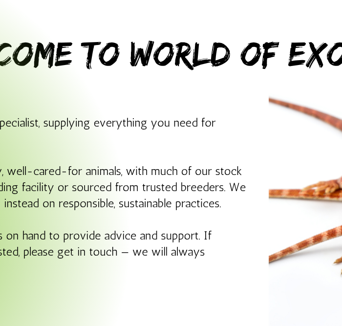 - Community: World of Exotics is more than just a pet shop; we're a community of like-minded individuals who share a passion for reptiles. Join us in celebrating these remarkable creatures and connect with fellow enthusiasts.